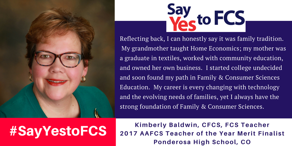 This edition spotlights Kimberly Baldwin, CFCS, as one of the AAFCS 2017 Teacher of the Year Merit Finalists!