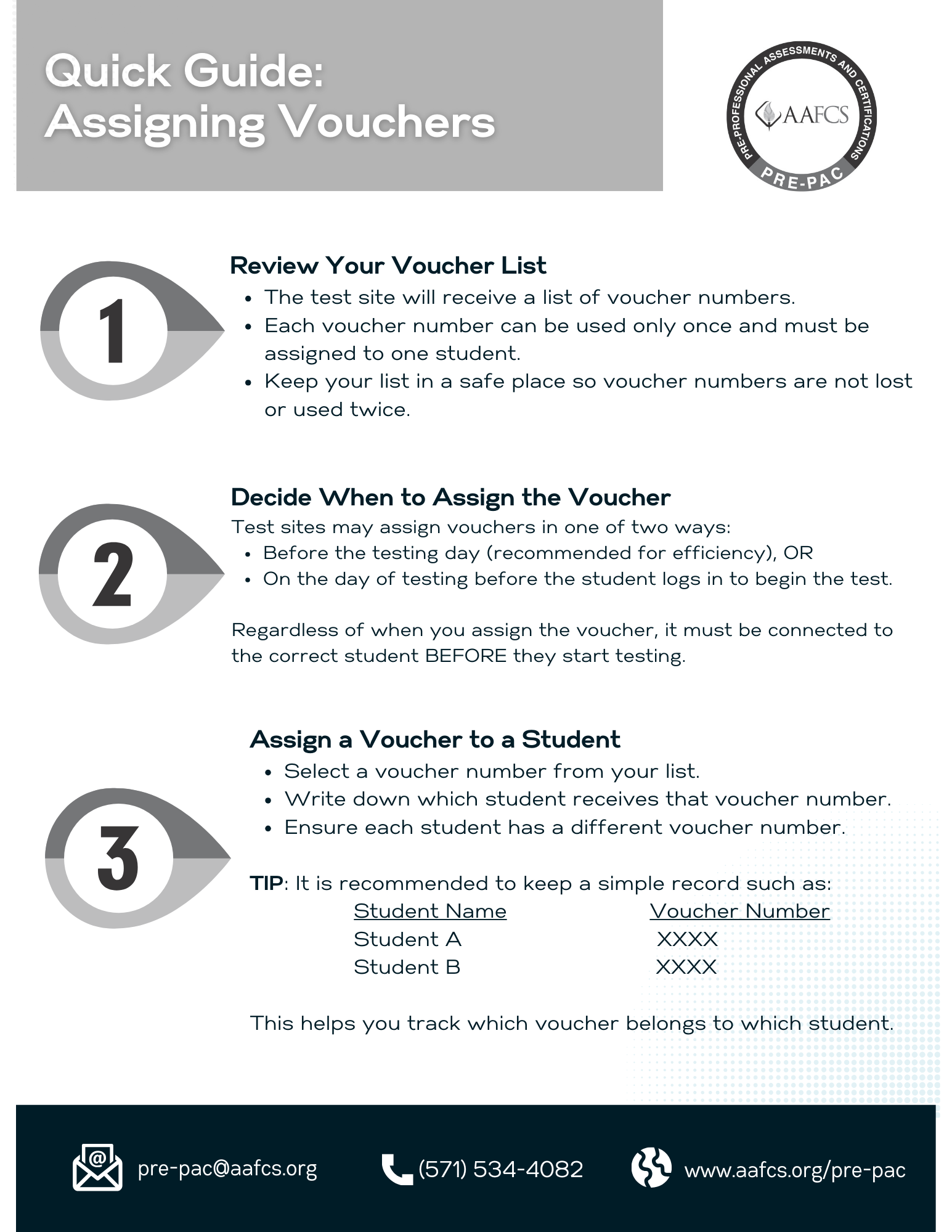 These instructions explain exactly how test sites should assign testing voucher numbers to students before they begin testing. Please follow each step carefully.